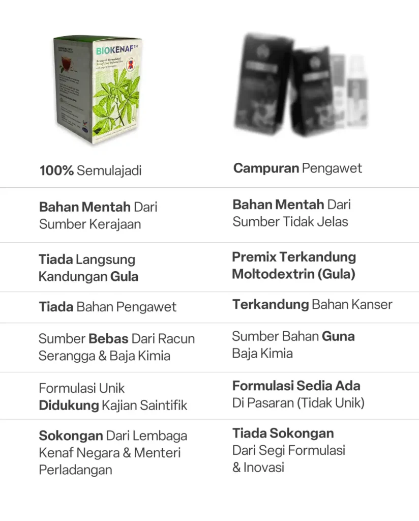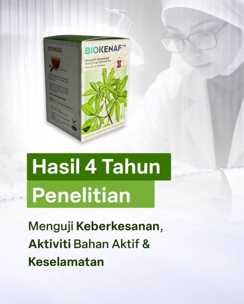 Biokenaf® diformulasi dari bahan semuljadi, 100% Organik tanpa bahan pengawet & telah menjalani ujian makmal ke atas sel hati memastikan keselamatan produk.